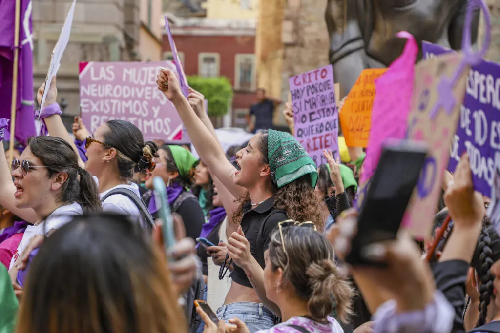Entre pañuelos morados, consignas y carteles, miles de mujeres se reunieron la tarde de este miércoles en la capital de Guanajuato para conmemorar el Día Internacional de la Mujer, así como para alzar la voz y hacer valer sus derechos para una vida libre de violencia.