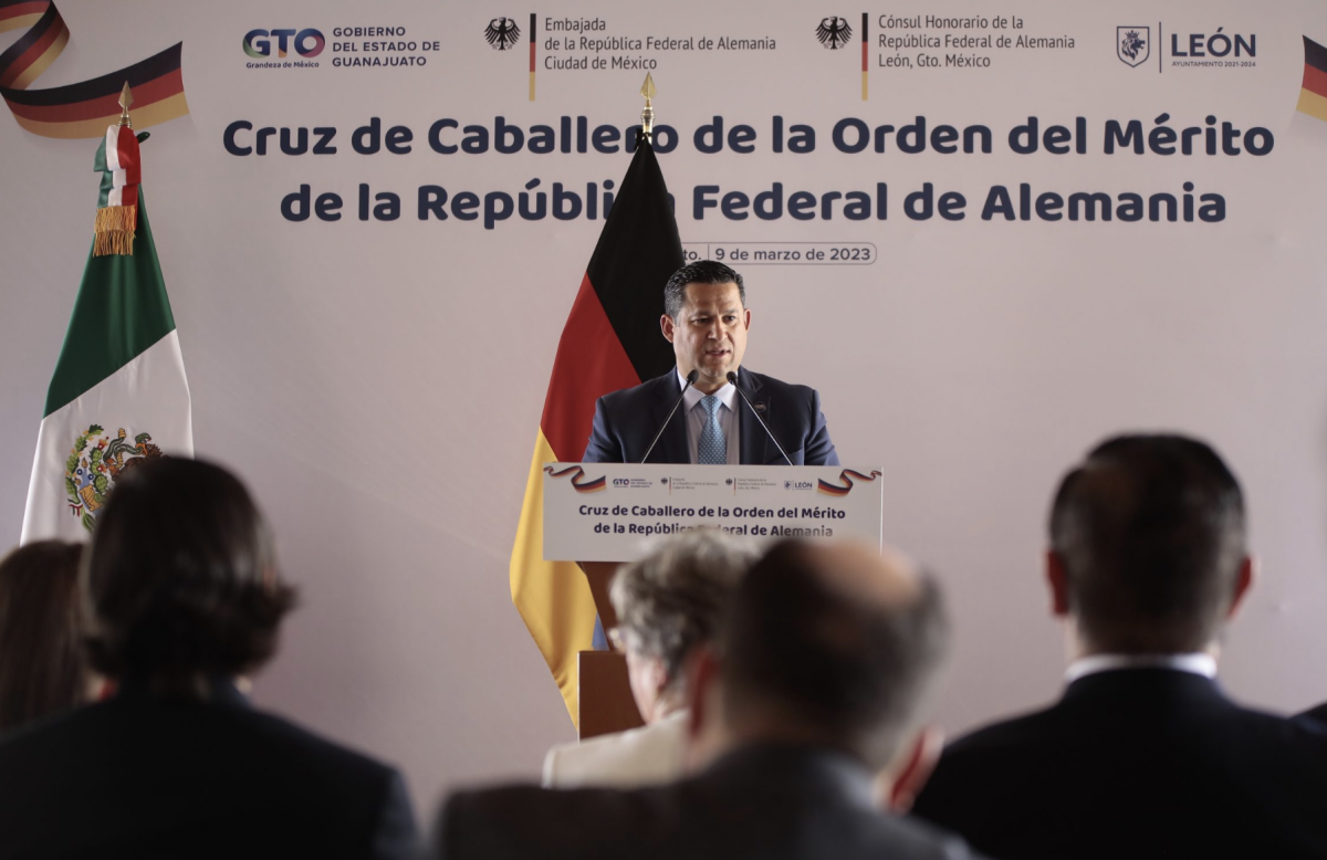 Al respecto de participar en la entrega del mayor reconocimiento que la República Federal otorga por los servicios al bien común, el mandatario estatal mencionó que en Guanajuato se encuentran muy orgullosos de la importante labor que ha desempeñado Monika Ilce Von Allwörden de Orozco, como Cónsul Honoraria de Alemania en León.