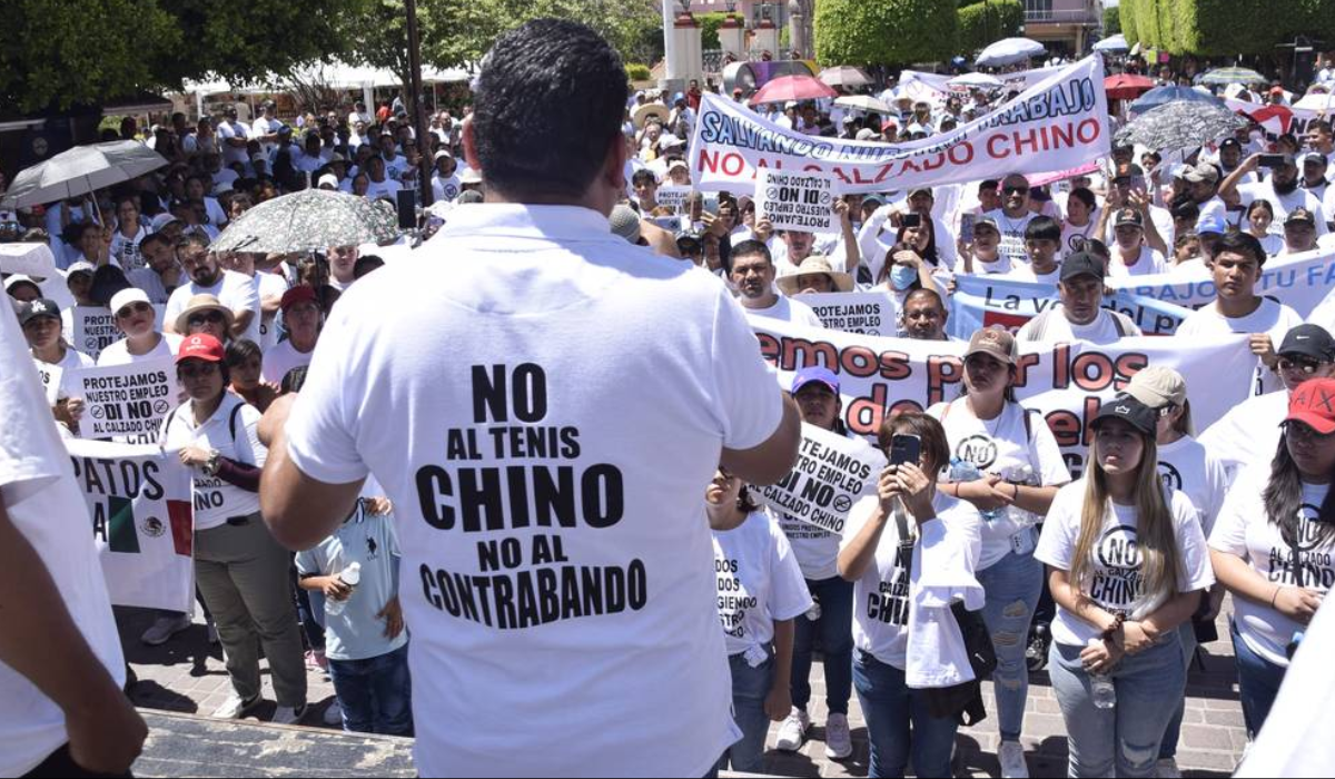 Cerca de 2,500 trabajadores y productores de calzado se reunieron en la plaza principal de San Francisco del Rincón para manifestarse contra la entrada de productos chinos al mercado mexicano.