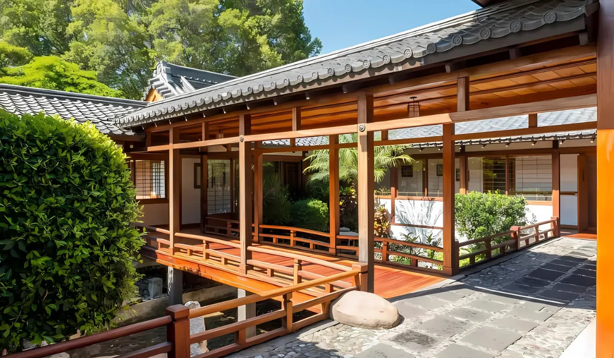 Su diseño está completamente inspirado en la arquitectura tradicional japonesa. Con jardines zen, lagos con peces koi, caminos de piedra y puentes de madera que evocan paisajes de Kioto.