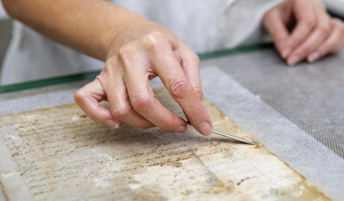 Entre pinzas, pinceles y mesas de luz, rescatan documentos que narran más de dos siglos de historia.